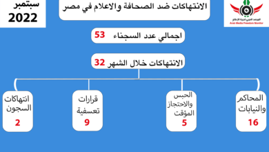 تقرير سبتمبر2022..تحقيقات مع 4 صحفيات وتدوير خامس والإفراج عن 4