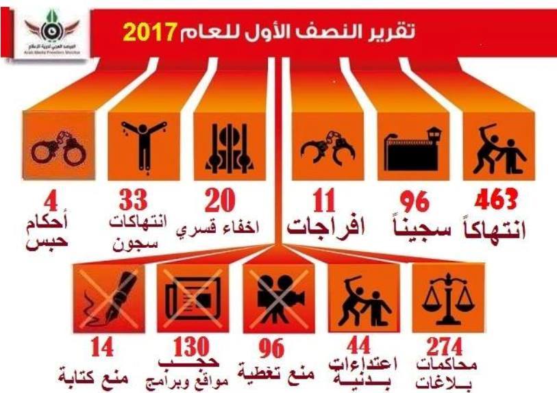 التقرير نصف السنوي لحرية الاعلام في مصر: 463 انتهاكا وحجب 130موقعا وبرنامج